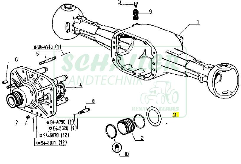 Distanzscheibe zwischen Vorderachse und Vorderachsbock jeweils hinten und vorne